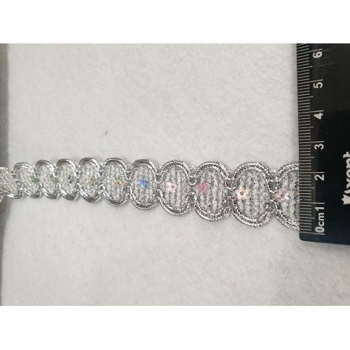 Тасьма вісімка з паєткою 2,4см 13м срібний