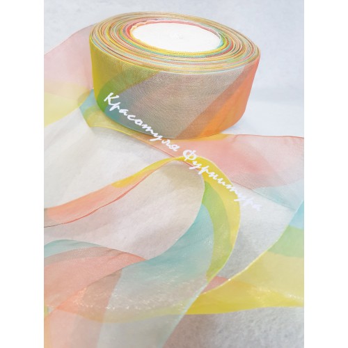 Стрічка органза 4см 46м райдужний